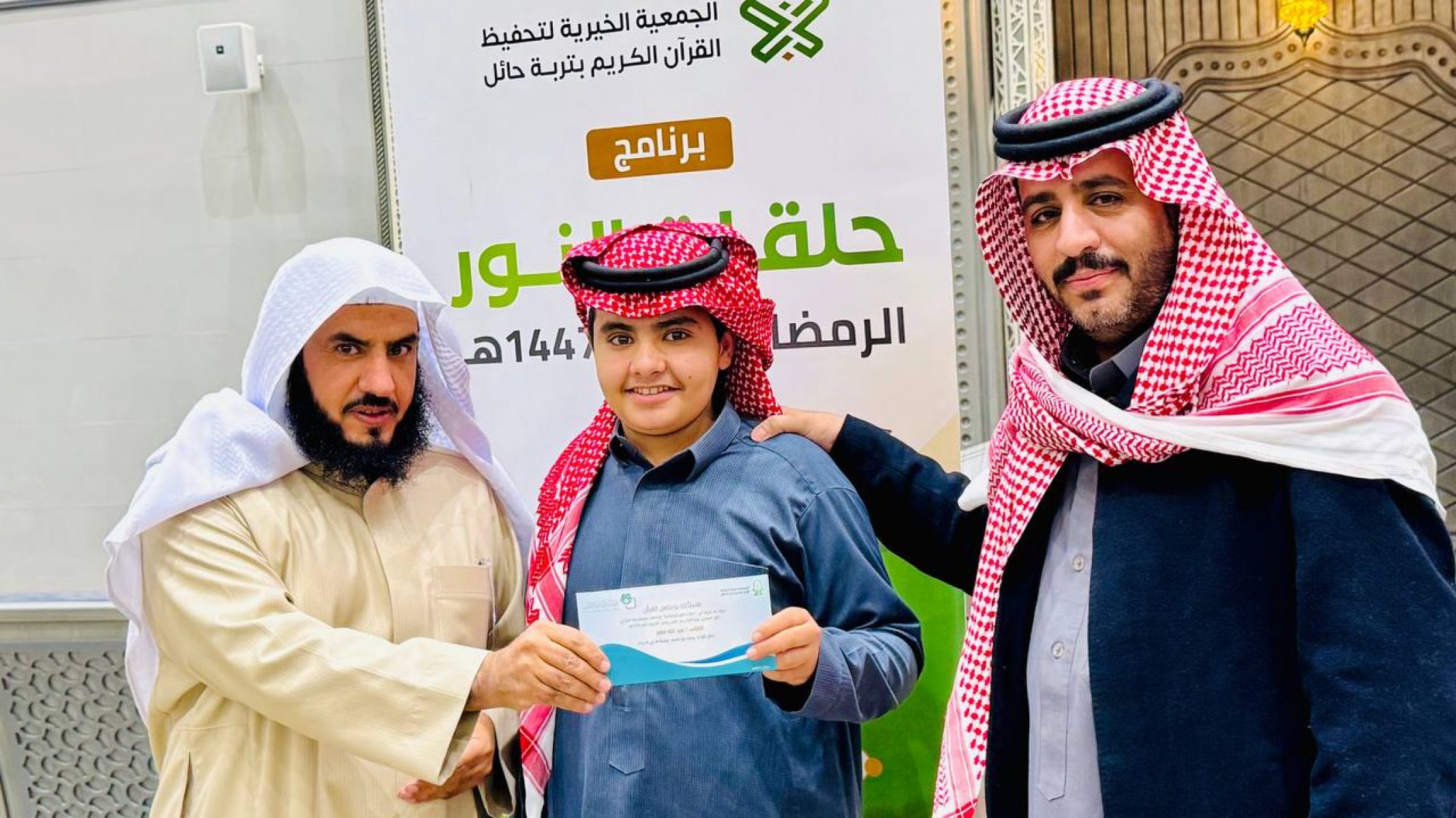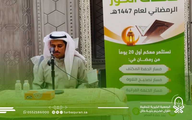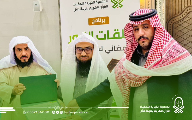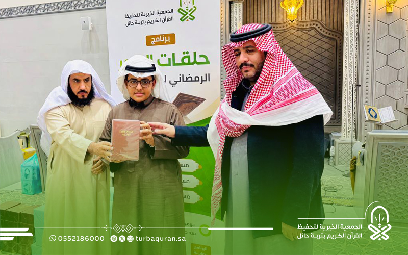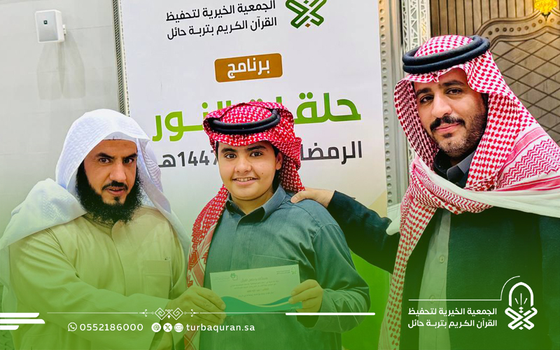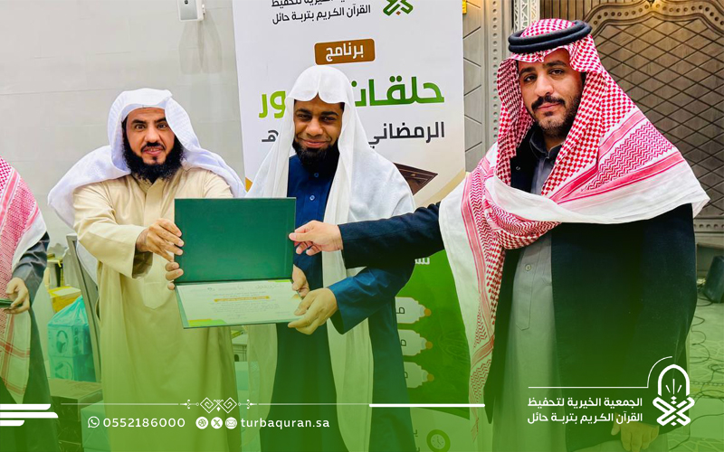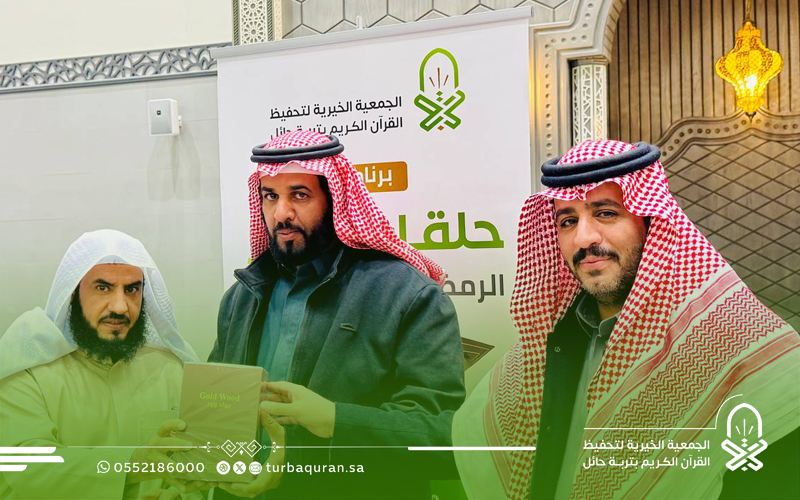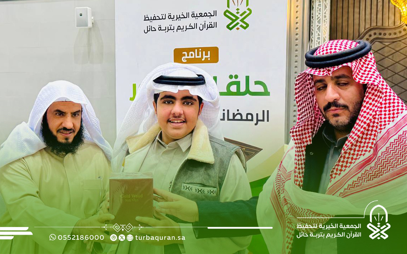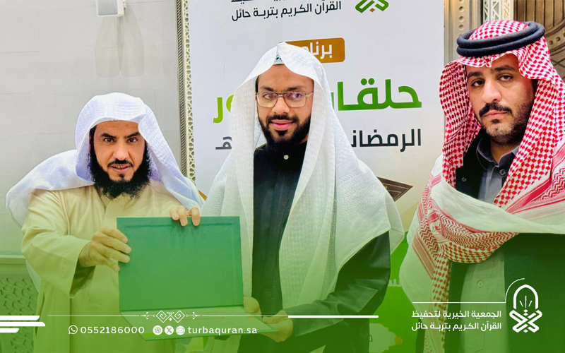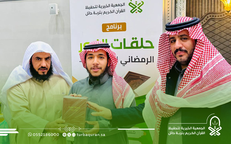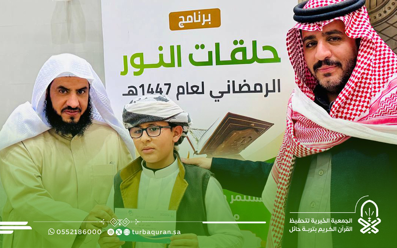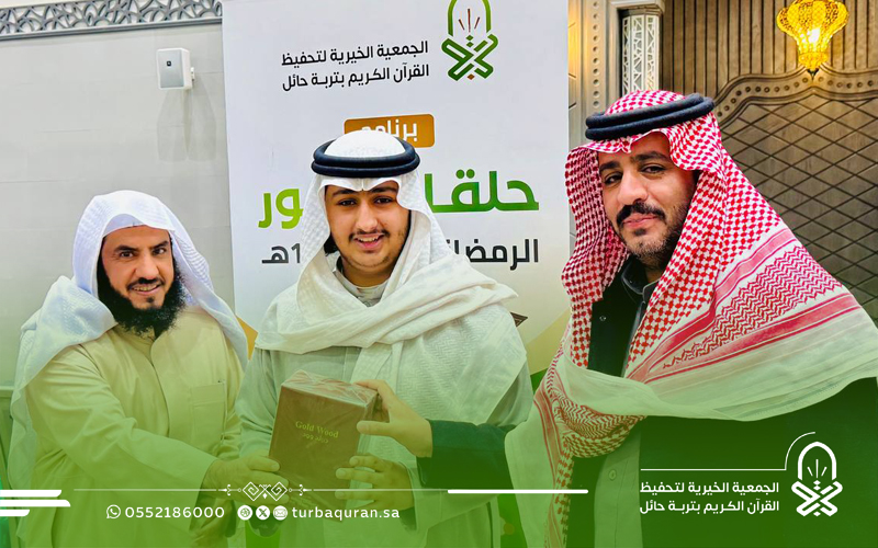 احتفت جمعية تحفيظ القرآن الكريم بتربة حائل، في ليلة مباركة من ليالي العشر الأواخر من رمضان 1447هـ، بختام مشروع (حلقات النور الرمضانية) الذي أقيم بمجمع الفرقان في جامع الشاكر، بدعم كريم وسخي من شركاء النجاح في مؤسسة محمد الماجد الأهلية.