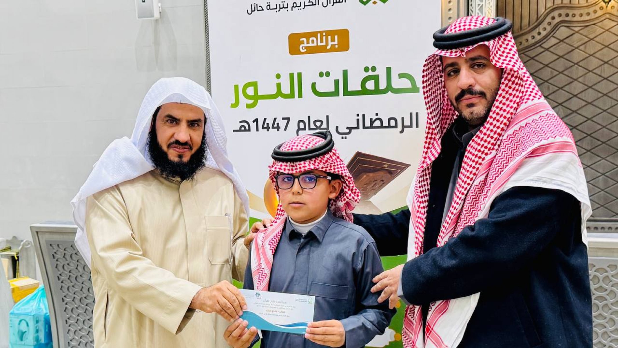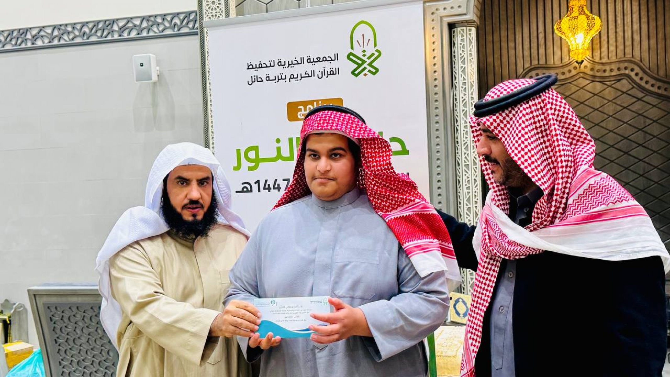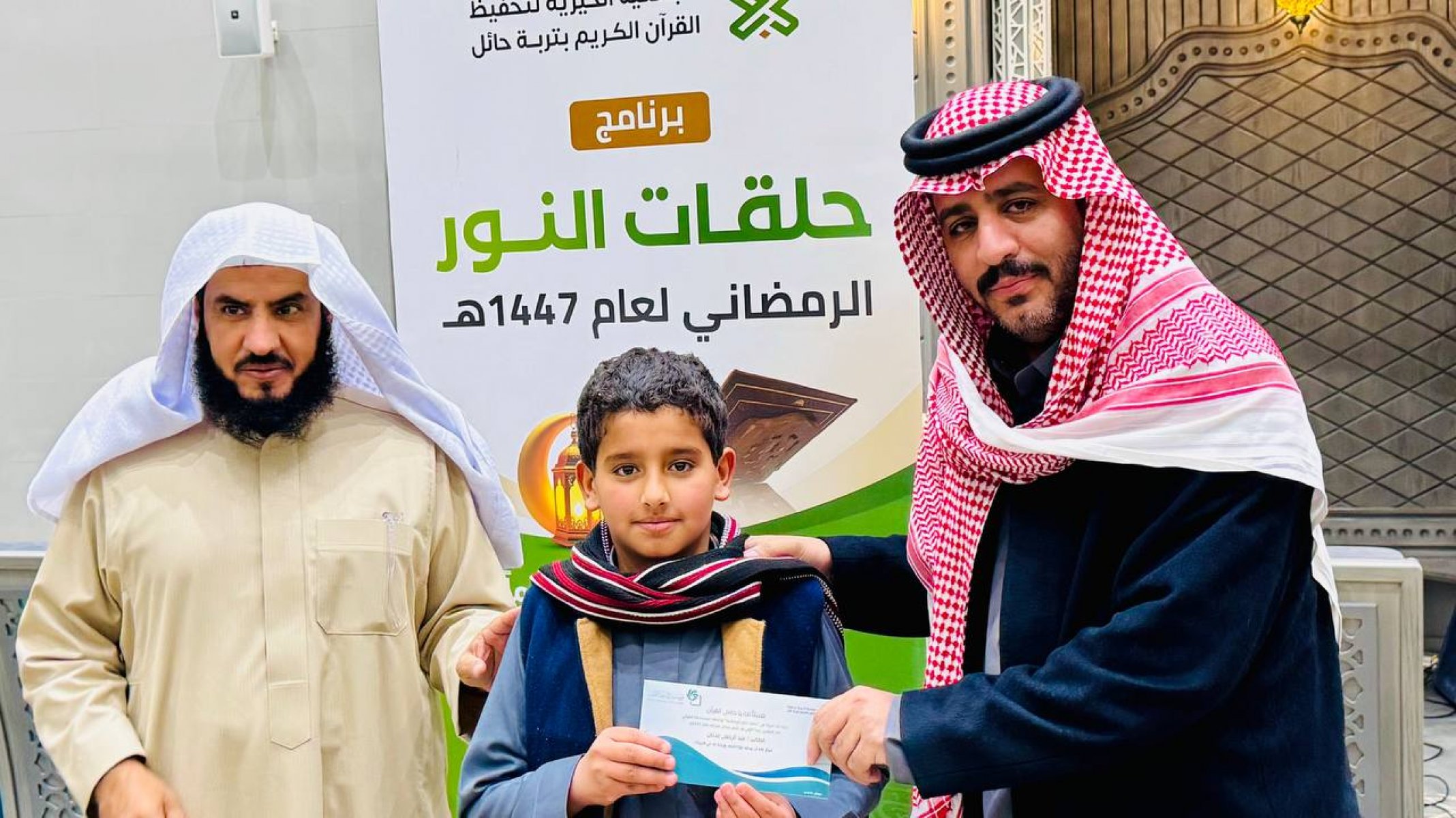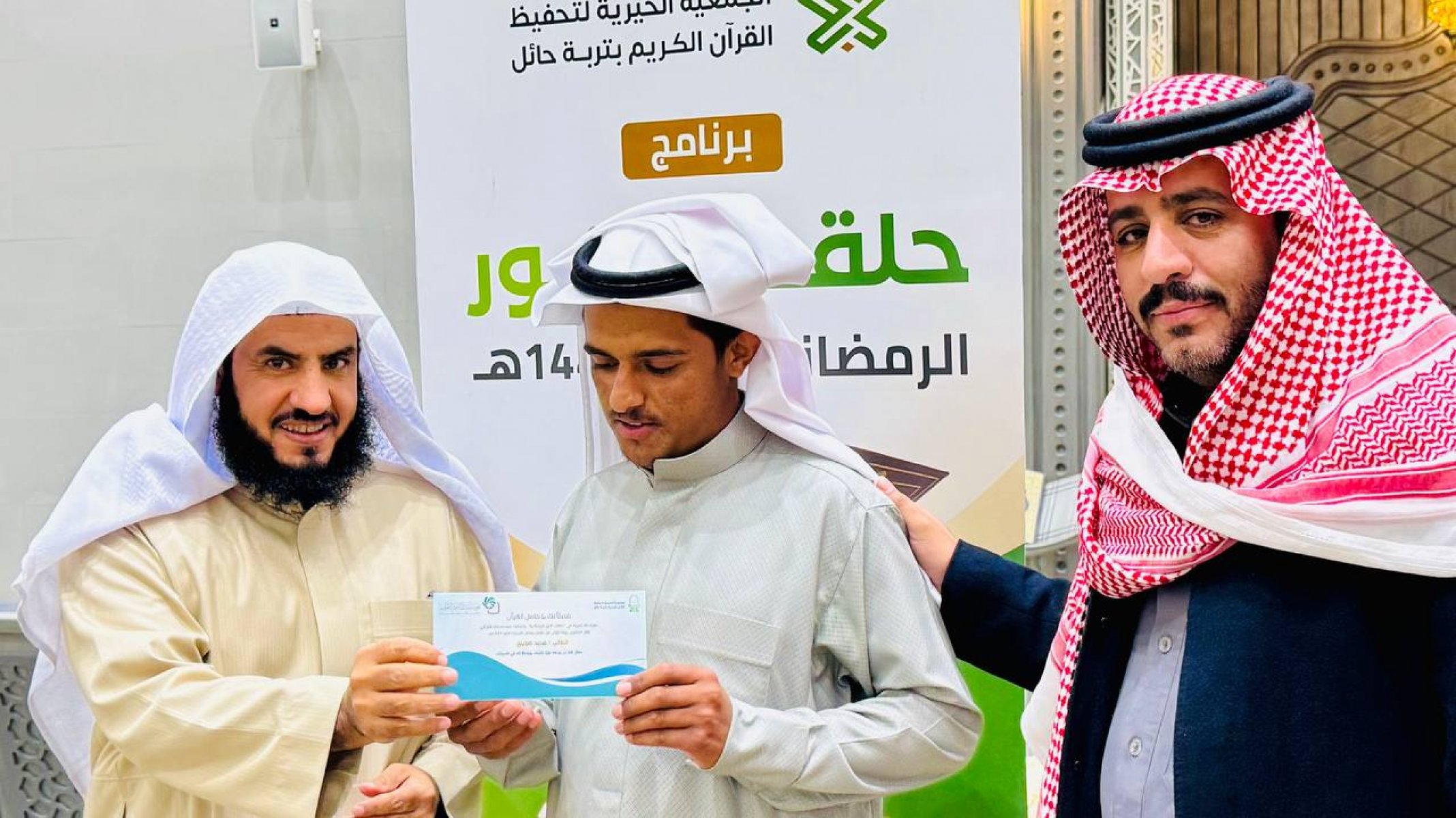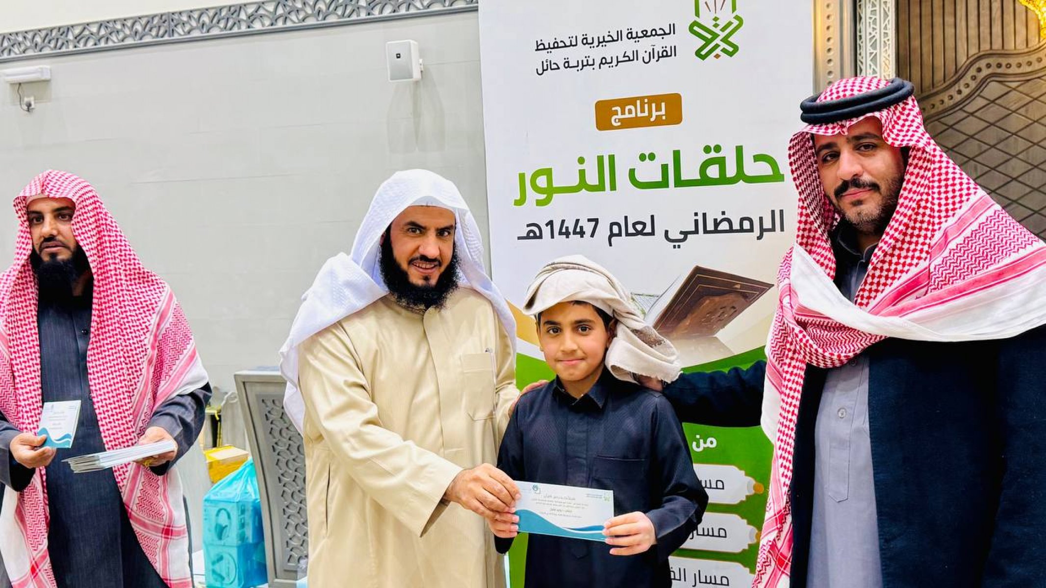 احتفت جمعية تحفيظ القرآن الكريم بتربة حائل، في ليلة مباركة من ليالي العشر الأواخر من رمضان 1447هـ، بختام مشروع (حلقات النور الرمضانية) الذي أقيم بمجمع الفرقان في جامع الشاكر، بدعم كريم وسخي من شركاء النجاح في مؤسسة محمد الماجد الأهلية.